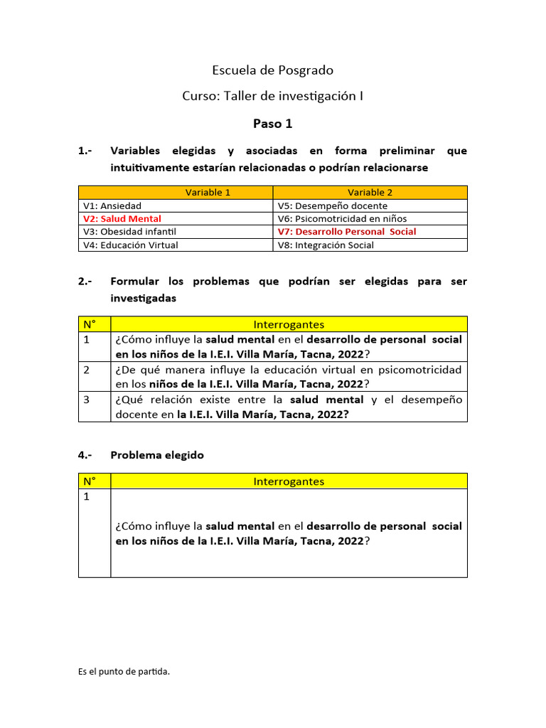 ¿Cómo influye la salud Determinar la influencia de la La salud mental influye VARIABLE