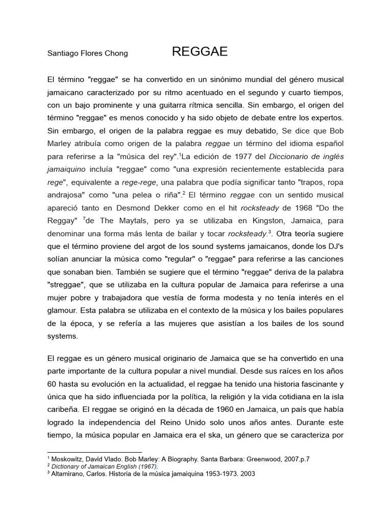 "streggae", que se utilizaba en la cultura popular de Jamaica para referirse a una
