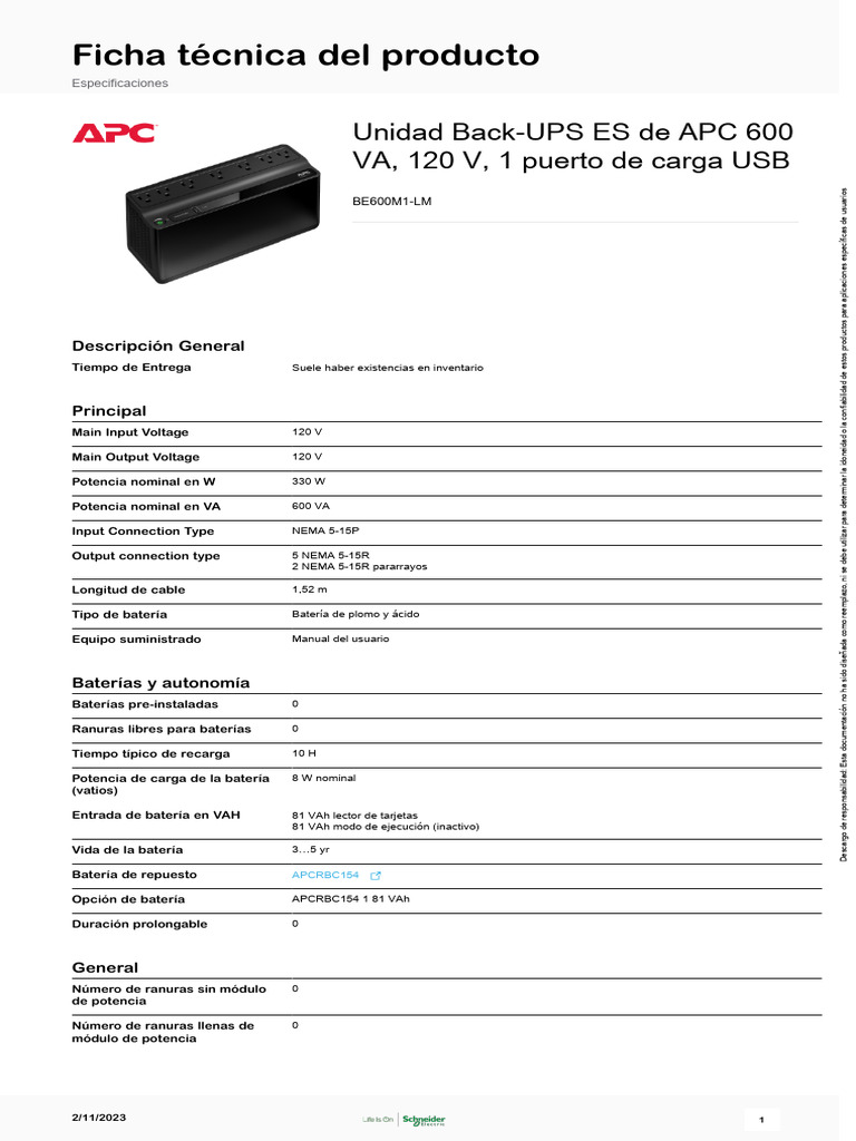 Entrada de batería en VAH 81 VAh lector de tarjetas