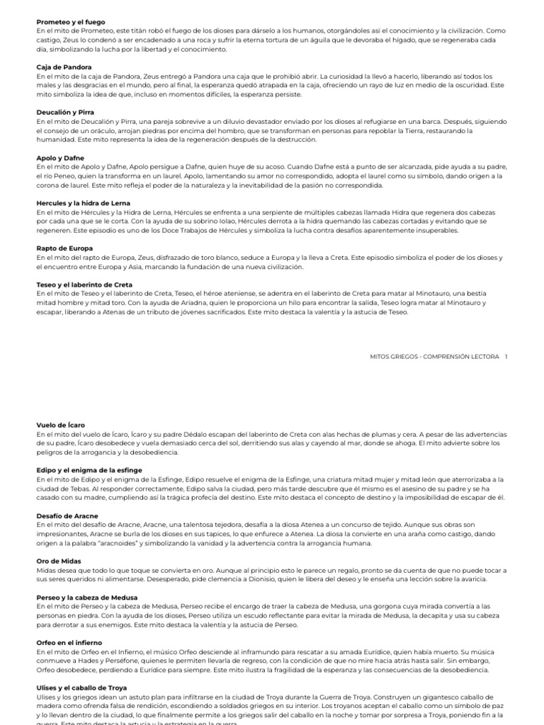 MITOS GRIEGOS - COMPRENSIÓN LECTORA 1