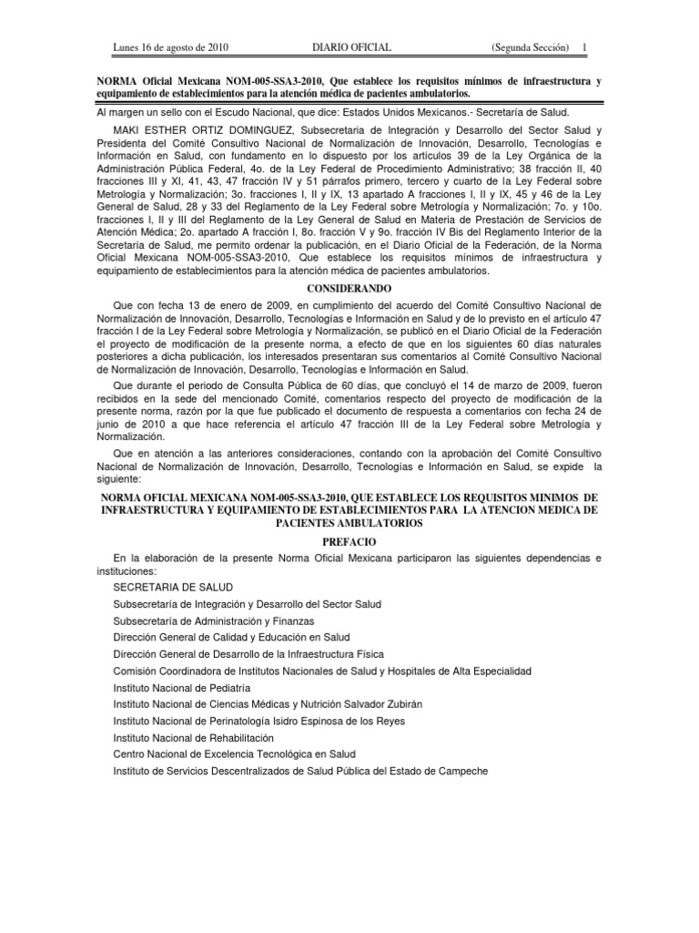 NORMA OFICIAL MEXICANA NOM-005-SSA3-2010, QUE ESTABLECE LOS REQUISITOS MINIMOS DE