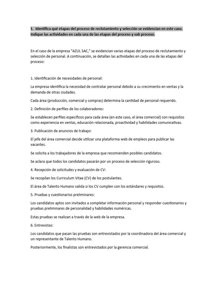 1. Identifica qué etapas del proceso de reclutamiento y selección se evidencian en este caso.