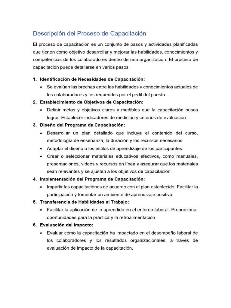El proceso de capacitación es un conjunto de pasos y actividades planificadas