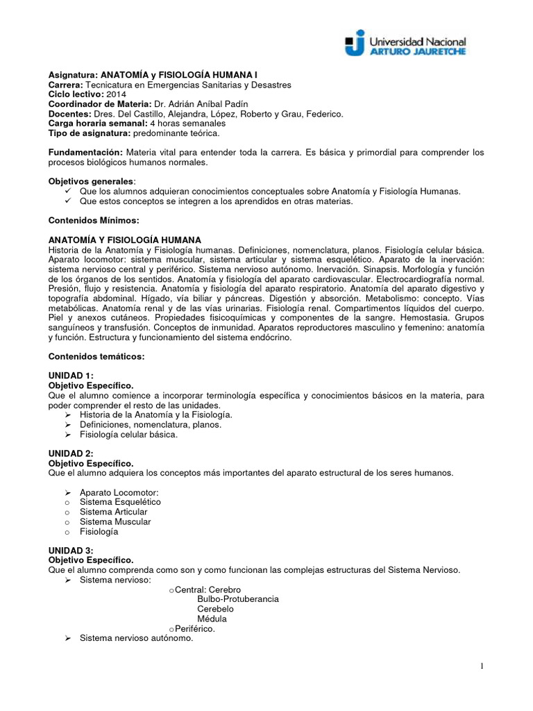 Asignatura: ANATOMÍA y FISIOLOGÍA HUMANA I