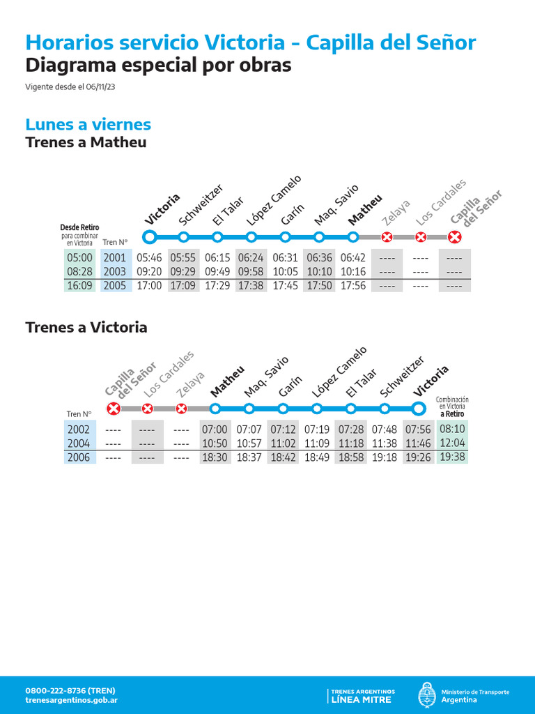 Horarios servicio Victoria - Capilla del Señor