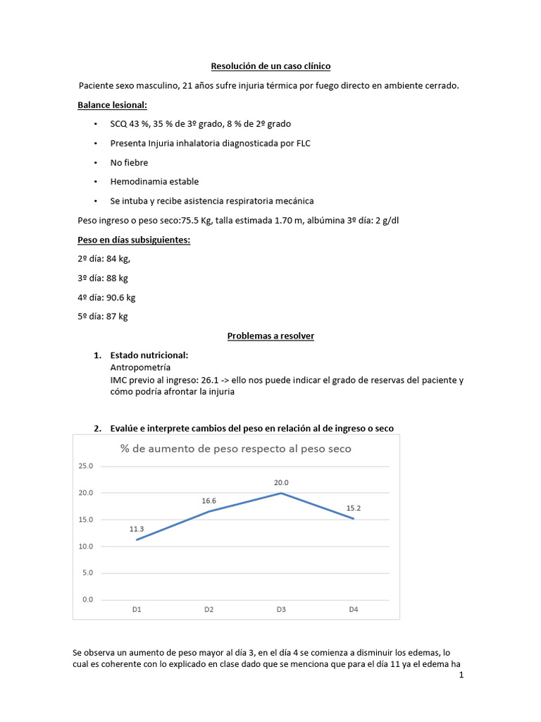 Peso ingreso o peso seco:75.5 Kg, talla estimada 1.70 m, albúmina 3º día: 2 g/dl