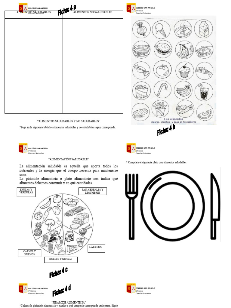 *Pega en la siguiente tabla los alimentos saludables y no saludables según corresponda.