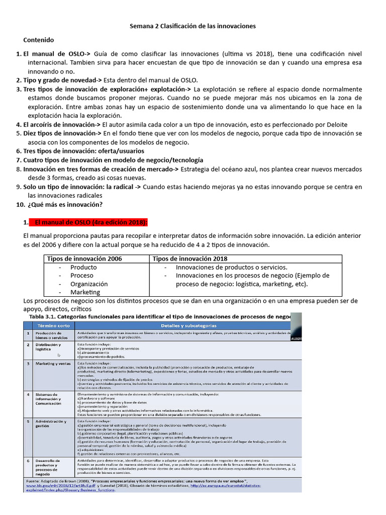1. El manual de OSLO-> Guía de como clasificar las innovaciones (ultima vs 2018), tiene una codificación nivel