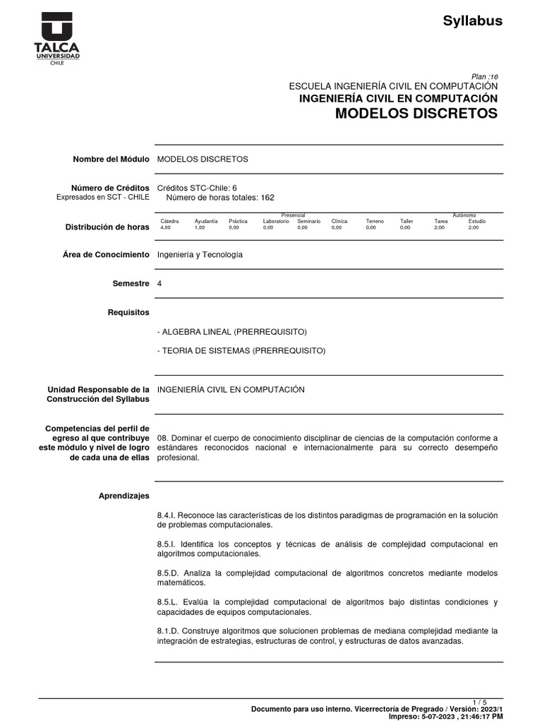 Requerimientos especiales Este módulo no contempla una prueba opcional, según acuerdo del Consejo de Escuela de la