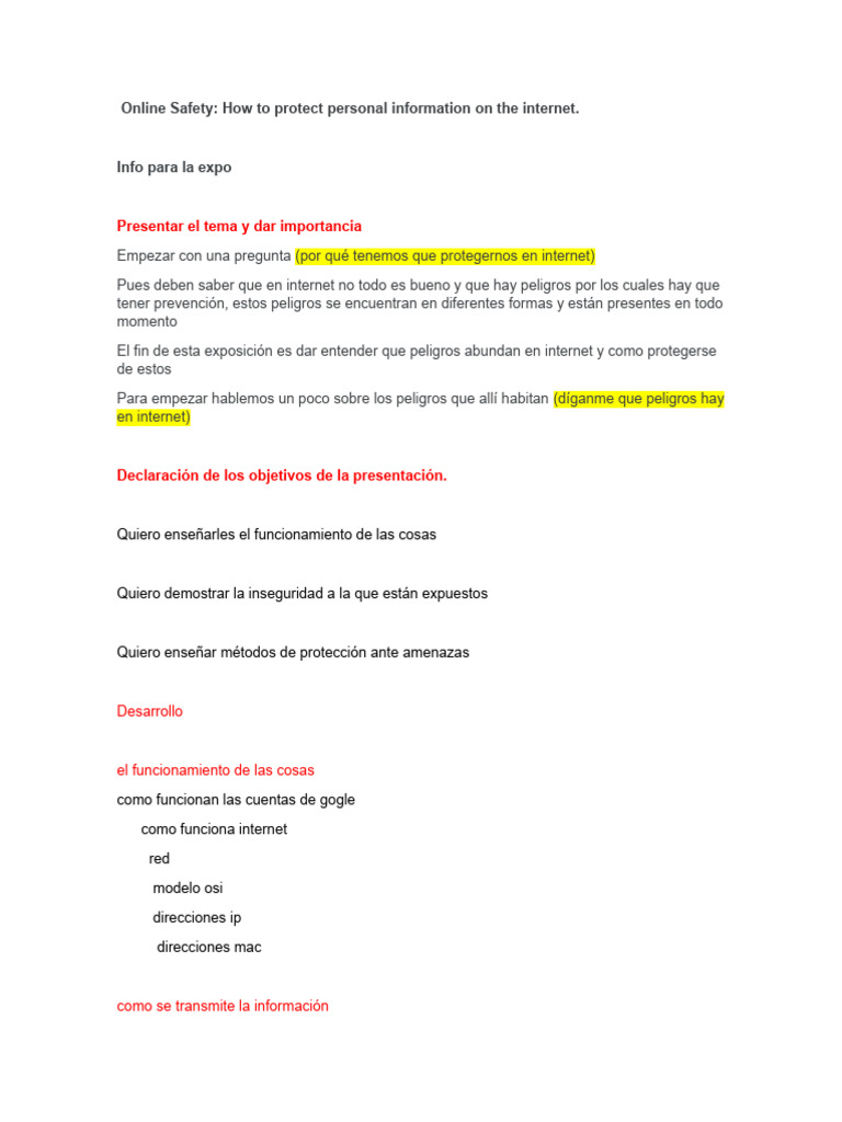 El fin de esta exposición es dar entender que peligros abundan en internet y como protegerse