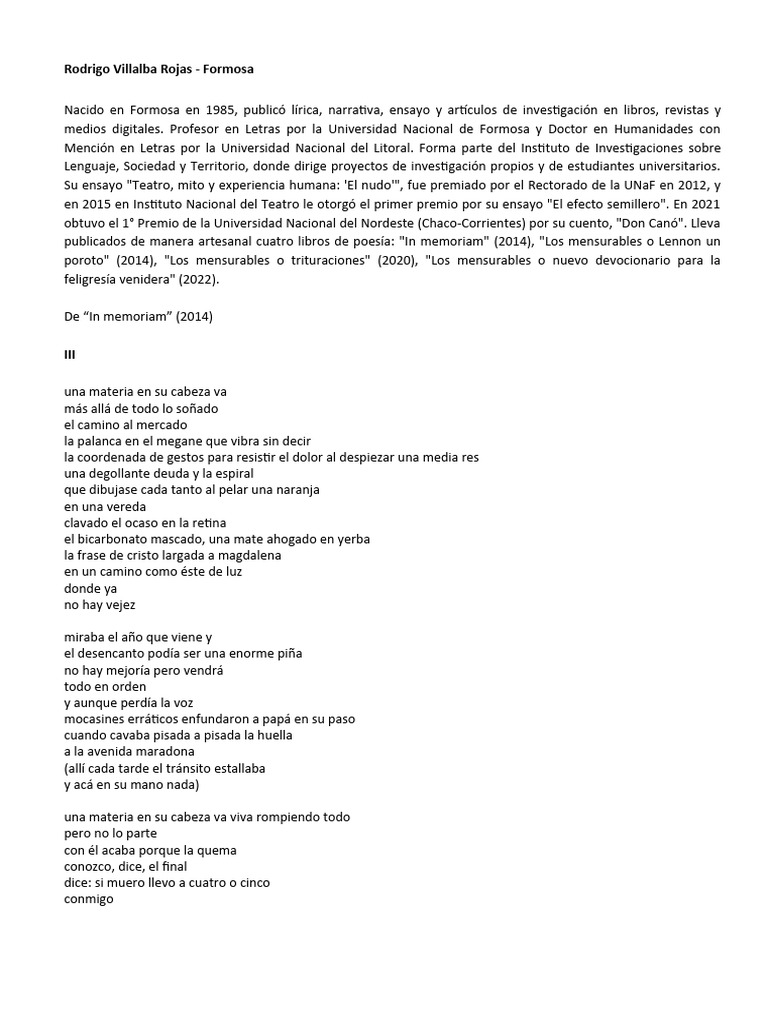 Nacido en Formosa en 1985, publicó lírica, narrativa, ensayo y artículos de investigación en libros, revistas y