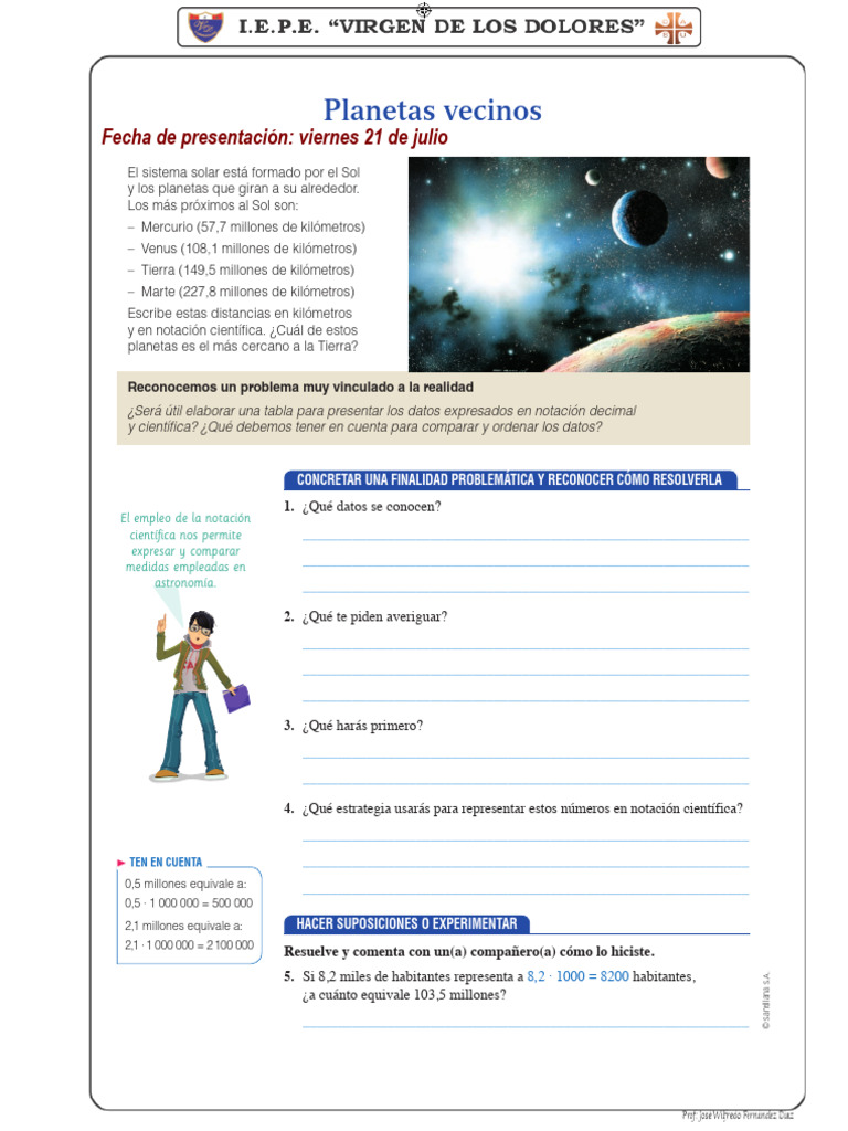 7. Calcula la masa de cada planeta y exprésala en notación científica. Luego,