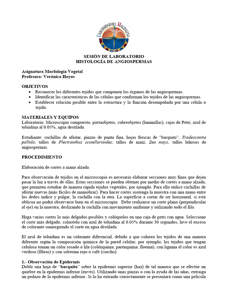 HISTOLOGÍA DE ANGIOSPERMAS