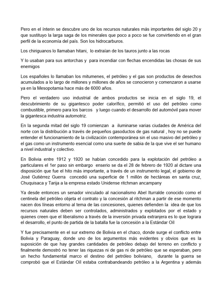 Bolivia como potenciales reservas de su producción internacional. El gobierno de Toro