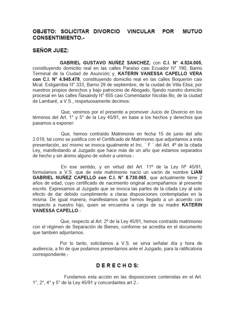 OBJETO: SOLICITAR DIVORCIO VINCULAR POR MUTUO