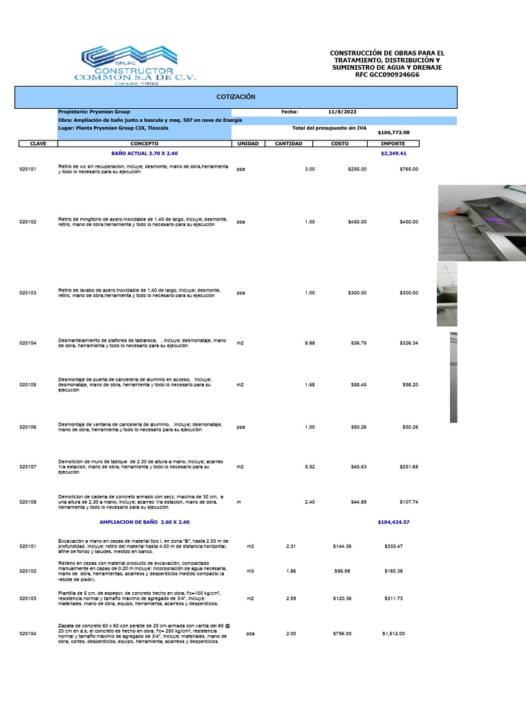 Lugar: Planta Prysmian Group CIX, Tlaxcala Total del presupuesto sin IVA