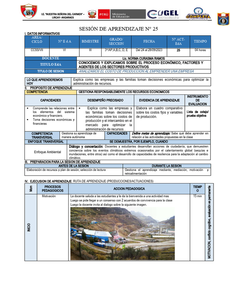 SESIÓN DE APRENDIZAJE N° 25