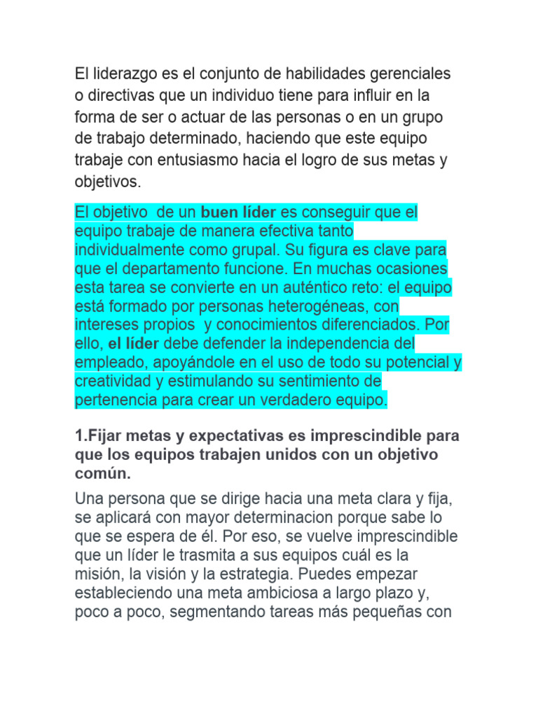 El objetivo de un buen líder es conseguir que el