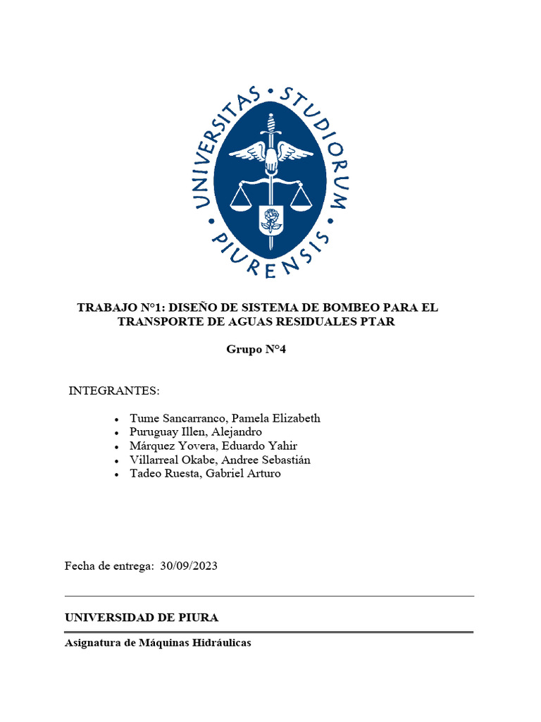 TRABAJO N°1: DISEÑO DE SISTEMA DE BOMBEO PARA EL