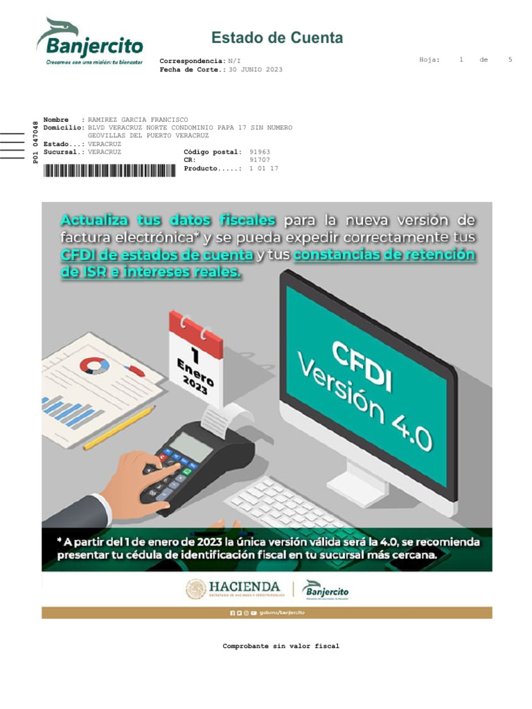 Nombre : RAMIREZ GARCIA FRANCISCO Saldo al Corte.............: 1,845.19