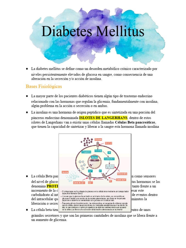 (predomina una destrucción de las células beta) y la Diabetes Mellitus Tipo 2