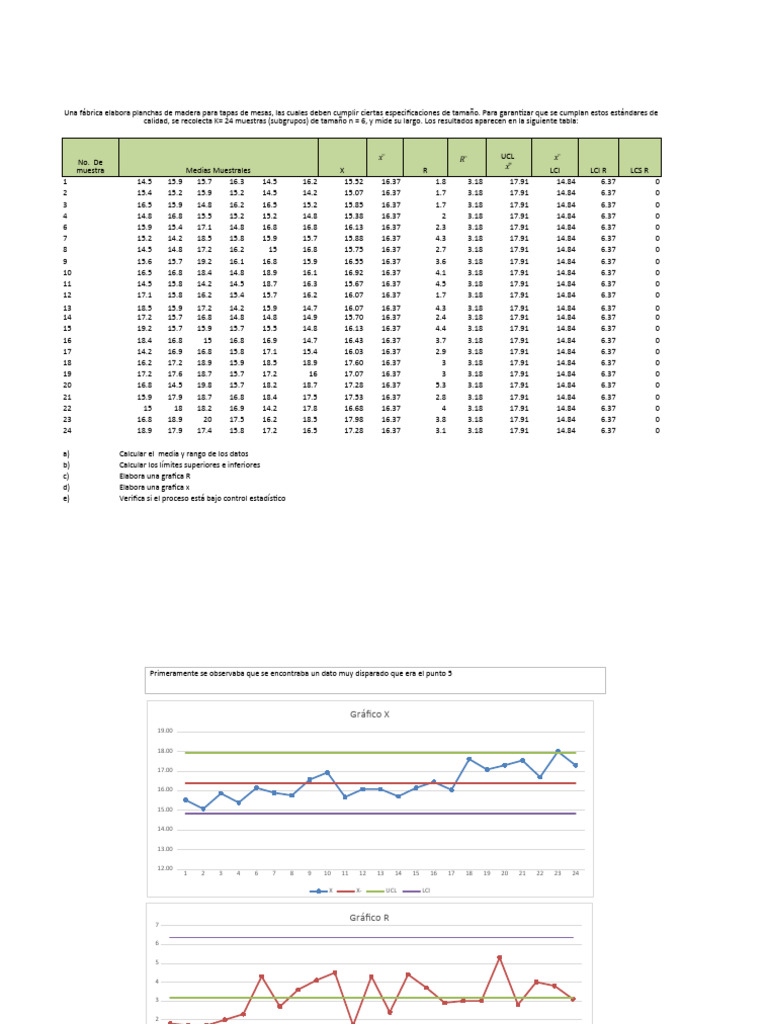 6 15.9 15.4 17.1 14.8 16.8 16.8 e) Verifica si el proceso está bajo control esta
