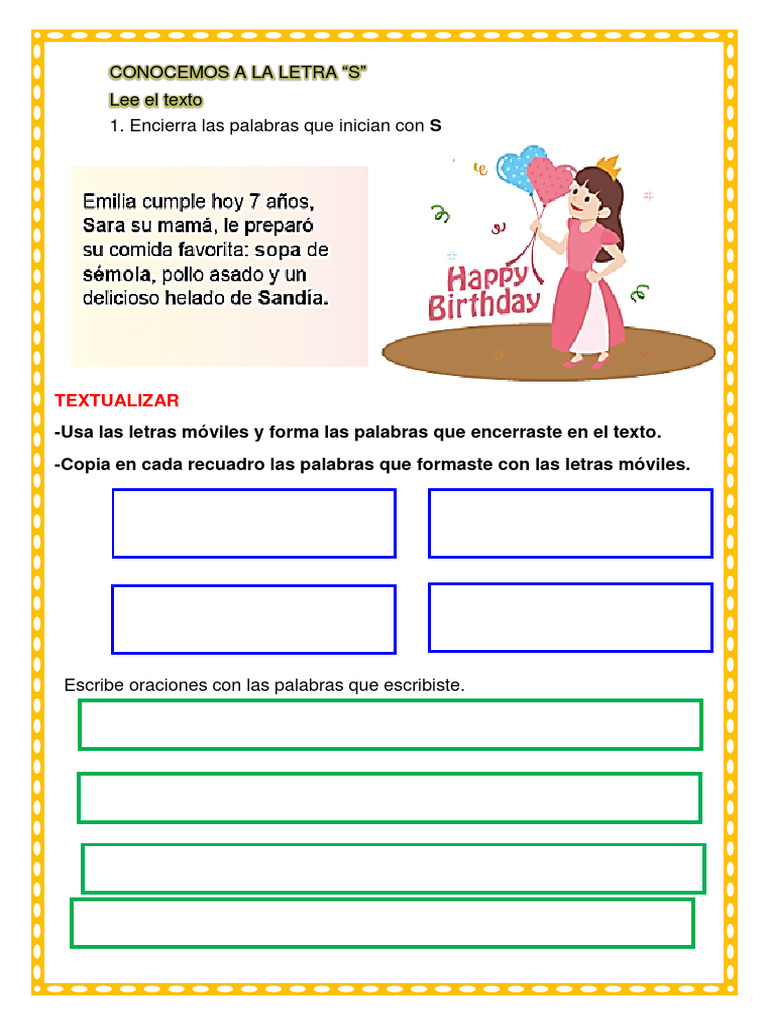 * Identifica la letra y escribe S