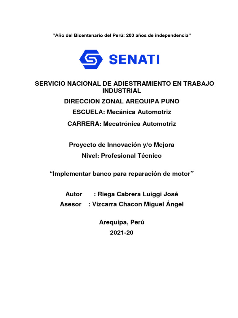 Para poder trabajar de manera correcta con el banco de reparación de motor daré las