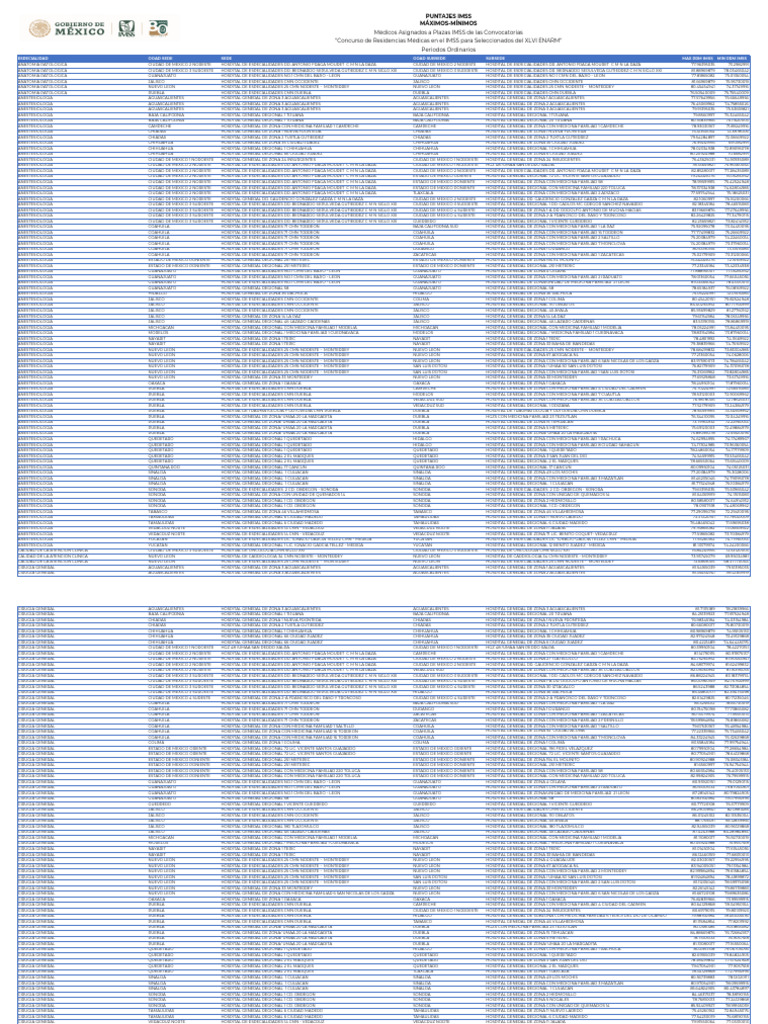 Puntajes IMSS y ENARM 2024-2025