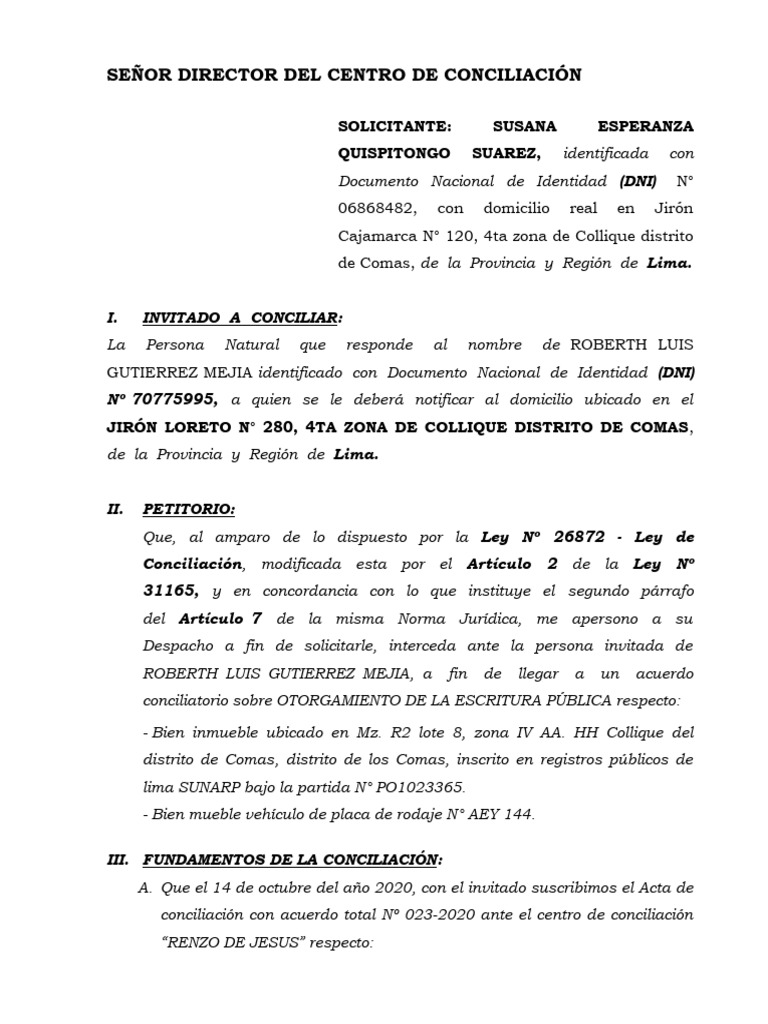 POR LO EXPUESTO: A Usted Señor director del Centro de Conciliación sírvase
