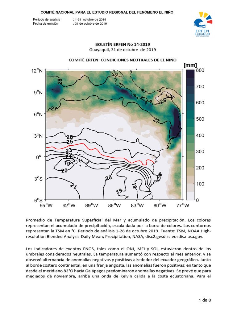 COMITÉ ERFEN: CONDICIONES NEUTRALES DE EL NIÑO