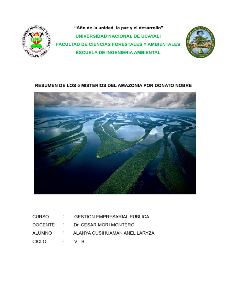 RESUMEN DE LOS 5 MISTERIOS DEL AMAZONIA POR DONATO NOBRE