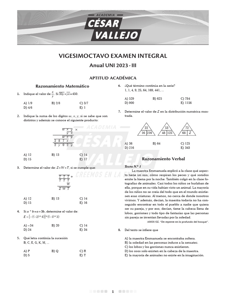 Anual UNI 2023 - III Vigesimoctavo Examen Integral
