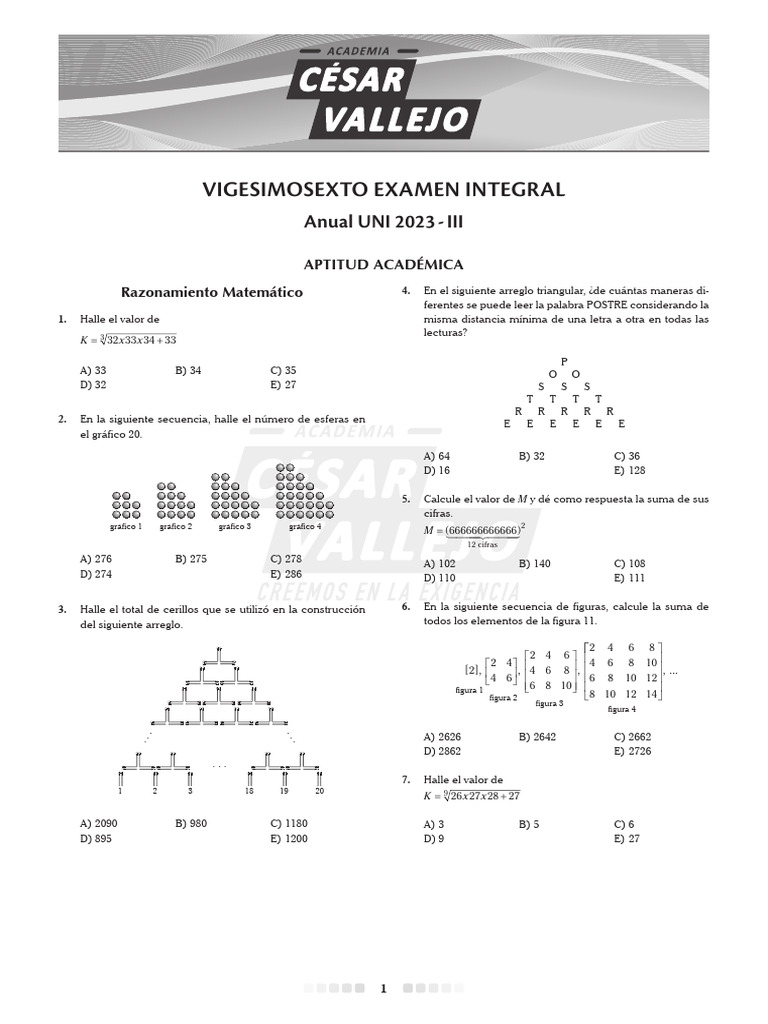 Anual UNI 2023 - III Vigesimosexto Examen Integral