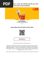 6 McNuggets+2 Papas Medianas + 2 Cono Vainilla por solo $89 Enero 24 $ 189 NUEVO