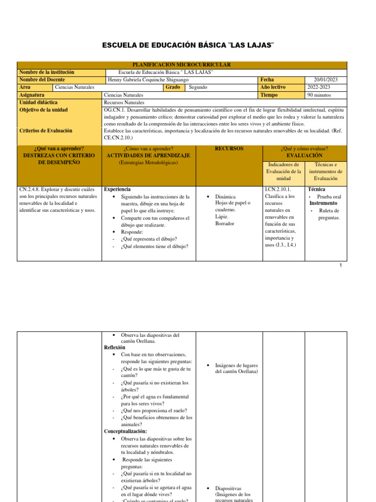 PLANIFICACIÓN MICROCURRICULAR