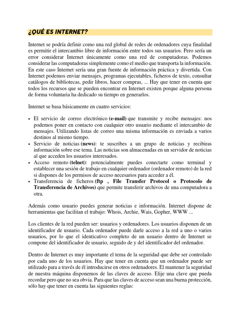 Internet se basa básicamente en cuatro servicios: