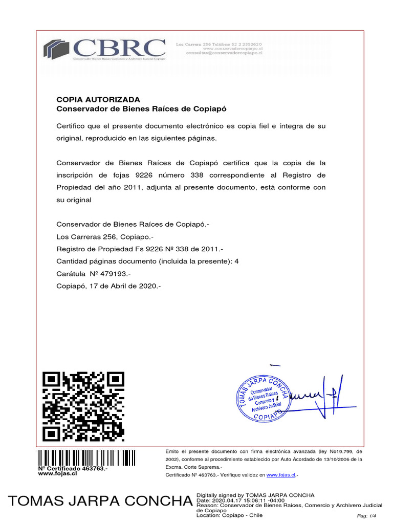 Certificado Nº 463763.- Verifique validez en [Link] .-