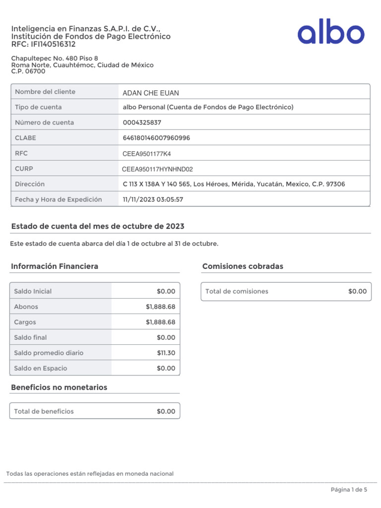 Estado de cuenta del mes de octubre de 2023