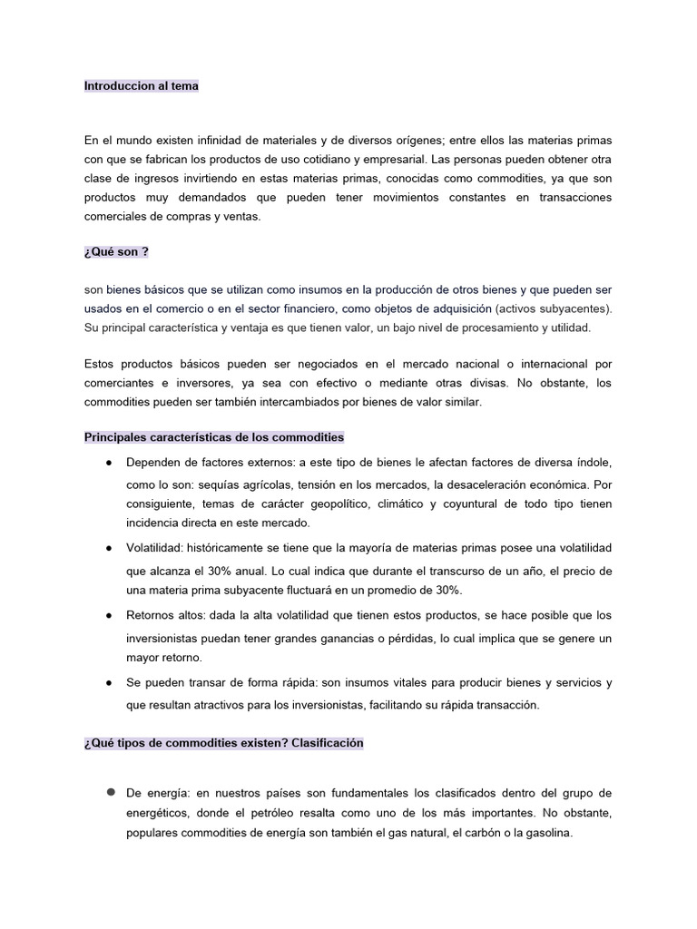Principales características de los commodities