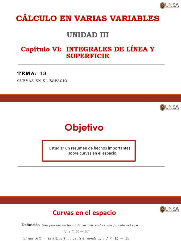 sobre curvas en el espacio.
