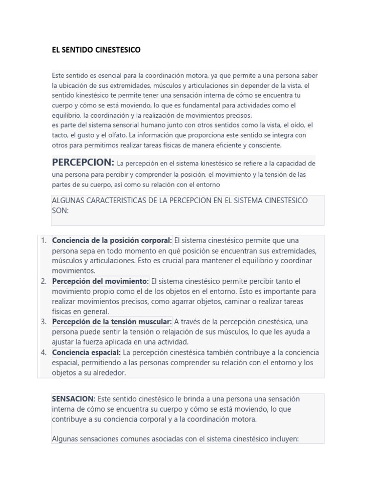 sentido kinestésico te permite tener una sensación interna de cómo se encuentra tu
