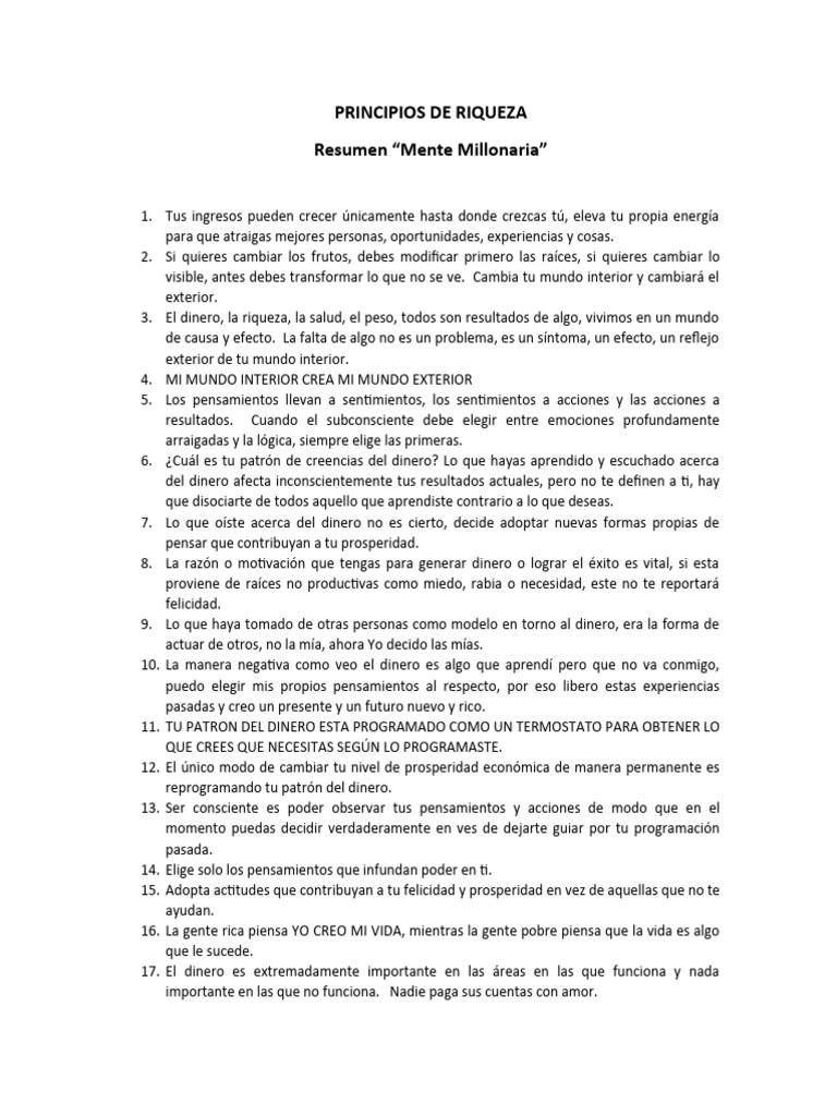 16. La gente rica piensa YO CREO MI VIDA, mientras la gente pobre piensa que la vida es algo