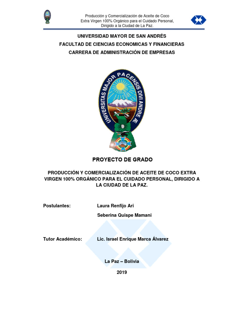 PRODUCCIÓN Y COMERCIALIZACIÓN DE ACEITE DE COCO EXTRA