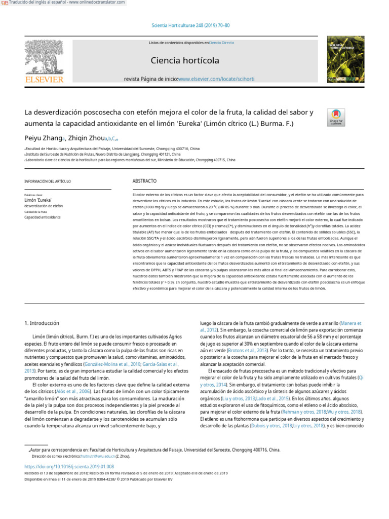 74 (17), 2157–2184.[Link] inicio de desverdizado en piel de limón. Ciencia. Hortico. 145, 34–38.[Link] 1016/