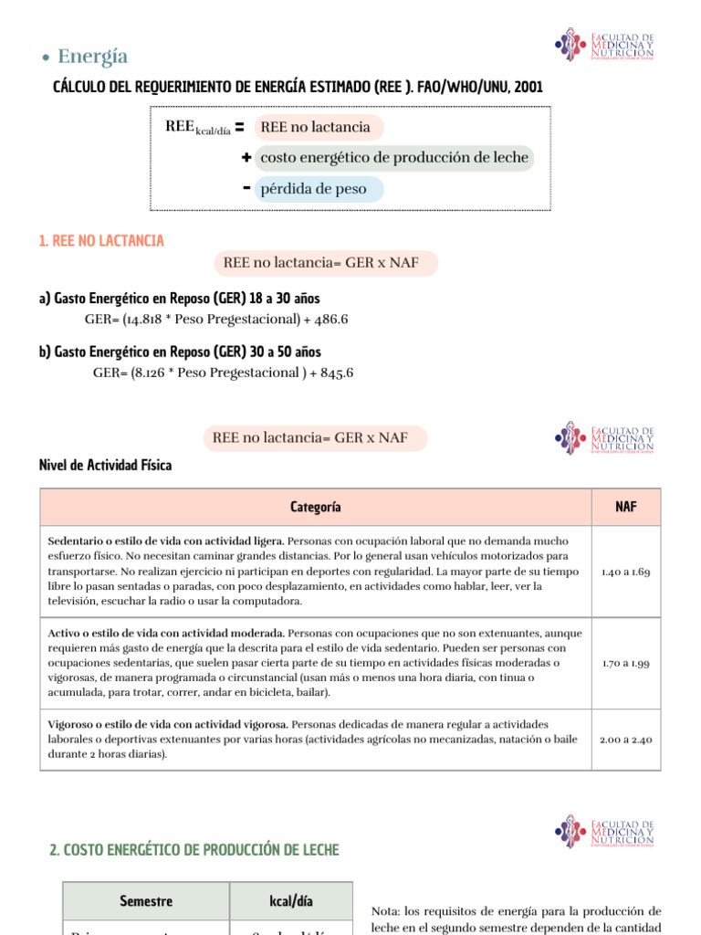 CÁLCULO DEL REQUERIMIENTO DE ENERGÍA ESTIMADO (REE ). FAO/WHO/UNU, 2001