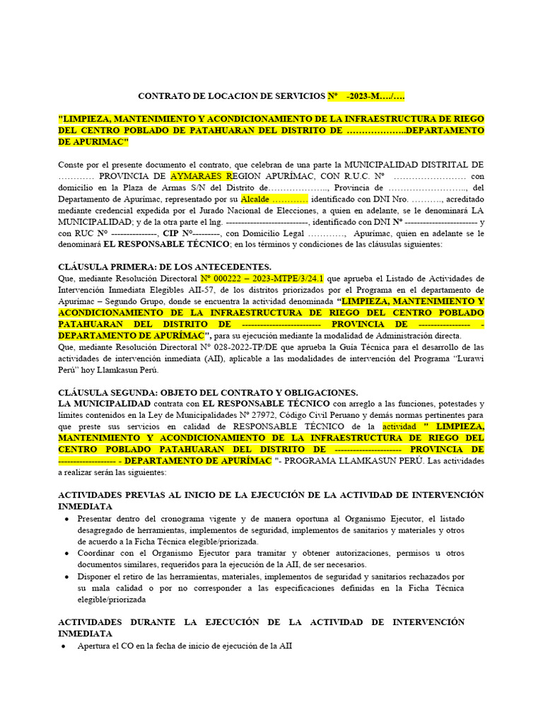 CONTRATO DE LOCACION DE SERVICIOS Nº -2023-M…./….