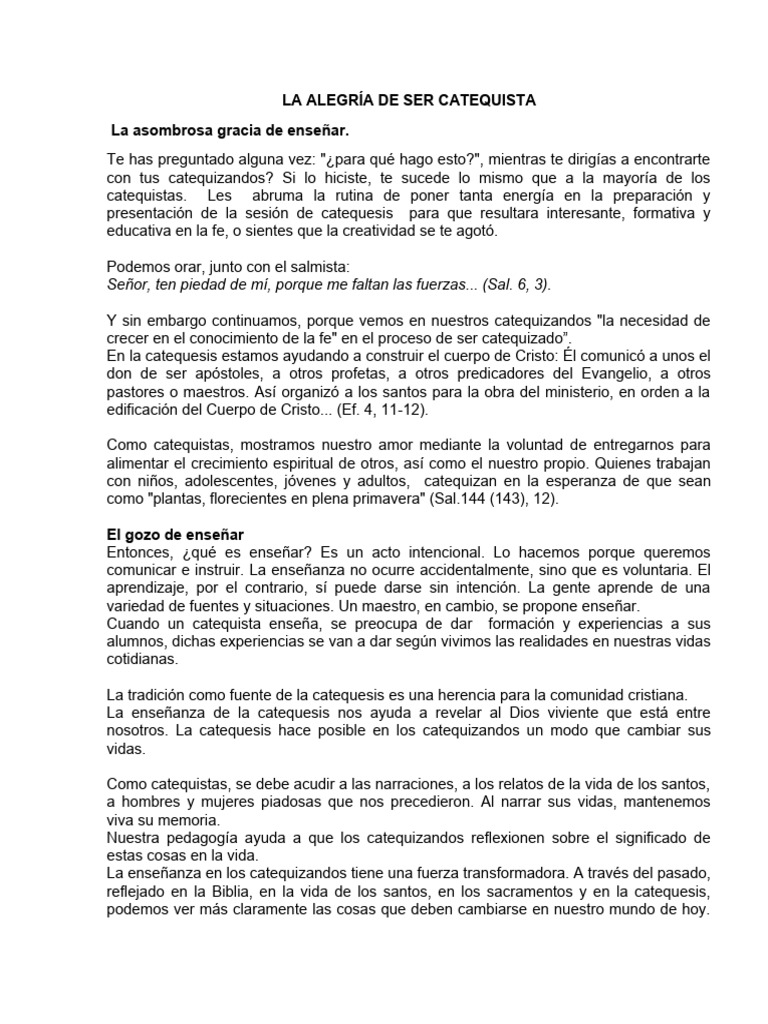 LA ALEGRÍA DE SER CATEQUISTA