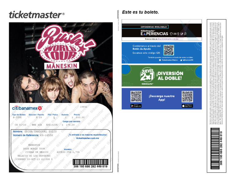 evento, el boleto adquirido será válido para la nueva fecha, en caso de solicitar el reembolso únicamente será devuelto el valor nominal del boleto. Consulta nuestras políticas en www.ticketmaster.com.mx.