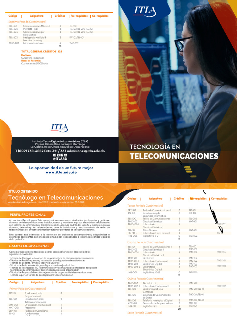 telecomunicación, ofrecer consultorías y ejecutar proyectos de telecomunicaciones. FIS-110 Física General 4 MAT-101